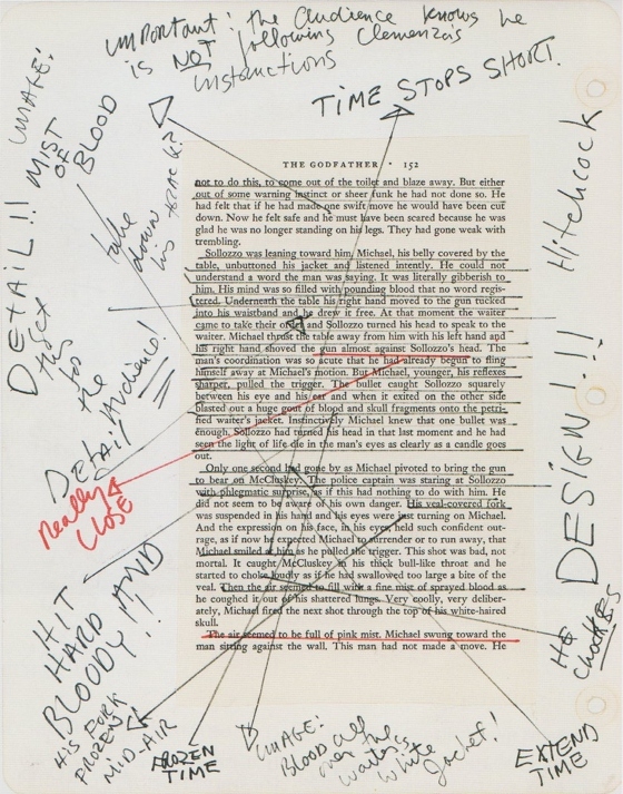 Pozrite si stránku z románu Krstný otec s poznámkami Francisa Forda Coppolu