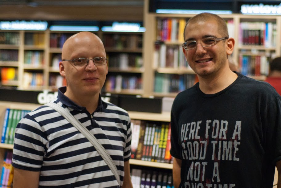 O pár hodín neskôr už bolo kníhkupectvo plné ľudí, medzi ktorými ste mohli stretnúť množstvo osobností slovenského literárne života. Od vydavateľov a distribútorov, vďaka ktorým vám môžeme ponúkať tie tisíce nádherných kníh, až po spisovateľov, ktorí stoja pri ich zrode. No a samozrejme nás veľmi potešila aj návšteva našich fanúšikov na Twitteri a Facebooku, ale aj všetkých Martinusákov bez rozdielu. Bolo skvelé privítať vás konečne v priestoroch, kam sme sa všetci bez problémov pomestili. 🙂