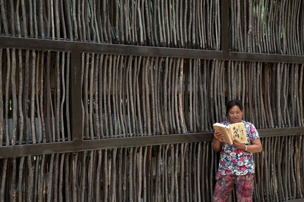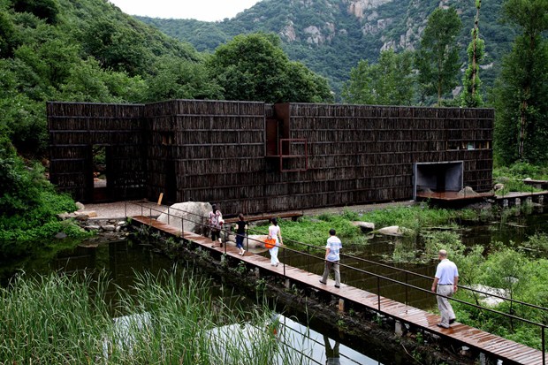 Čínska knižnica zo skla a drevených paličiek