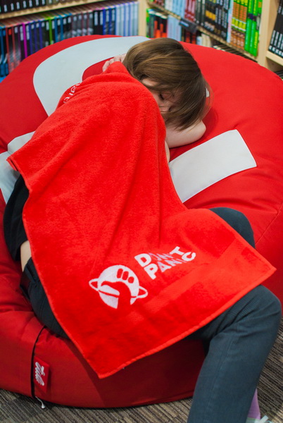 Ak máte počas Uterákového dňa cestu okolo ktoréhokoľvek z našich kamenných kníhkupectiev v Bratislave, Martine, Nitre alebo Žiline, určite sa zastavte. každý, kto príde s uterákom, dostane stopársky odznak, ktorý bude hrdo hlásať, že pozná odpoveď na základnú otázku života, vesmíru a všetkého. Nie je potrebné nič viac než prísť s uterákom a žmurknúť na naše Martinusáčky. 🙂