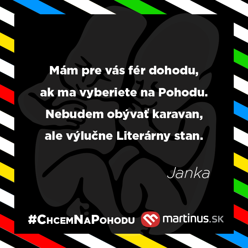 Už budúci týždeň sa koná náš najobľúbenejší letný festival Bažant Pohoda a tento rok historicky prvýkrát aj s Literárnym stanom Martinus.sk! Veľmi nás to teší, Kali Bagala už chystá tak zaujímavý program, že budete mať problém odskočiť si aspoň na niektoré koncerty 😉 a celkovo sa už nevieme dočkať. A aby sme sa o svoju radosť podelili aj s vami, máme tu súťaž o päť lístkov na festival Bažant Pohoda. Nabrúste mysle, súťaž je jednoduchá, ale úplne zadarmo to nebude! 🙂