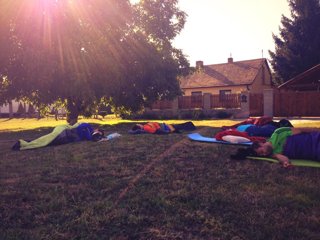 Ležím pokrútený na zadnej trojsedačke, nohy mi trčia von z auta. Je polnoc a uprostred Žarnovice padla zima, no konská masť príjemne hreje ubolený chrbát. Snažím sa presviedčať sa, že spím. Okolo auta sa na karimatkách o to isté snaží pár ďalších ľudí. Nočnú tmu prerušujú náhle skandovania a o 30 sekúnd je zase ticho. Nevieme, kedy presne príde Ďuri, takže pokus o spánok končí len neustálym prehadzovaním sa.