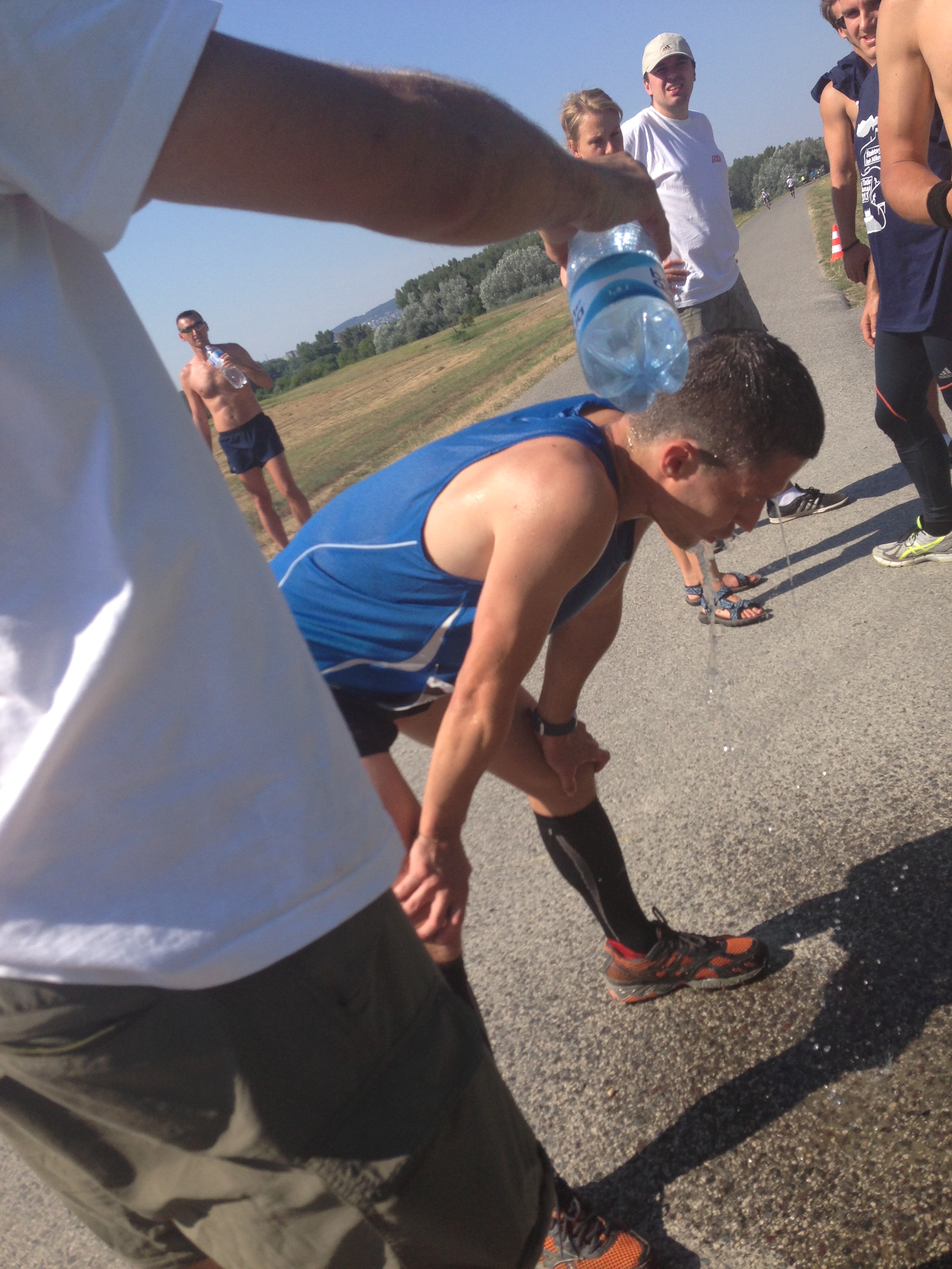 200 metrov pred cieľom sme už ostatní netrpezlivo čakali na Dua. Keď pribiehal k nám, rozbehli sme sa a posledné metre sme si užívali s ním (teda, my sme si ich užívali, on nás vraj už ani poriadne nevnímal…). Do cieľa sme došprintovali za tónov hitu od Elánu, s euforickým výrazom a slzami v očiach. Práve sme po vlastných zabehli 345 kilometrov Od Tatier k Dunaju. My sme to dali!