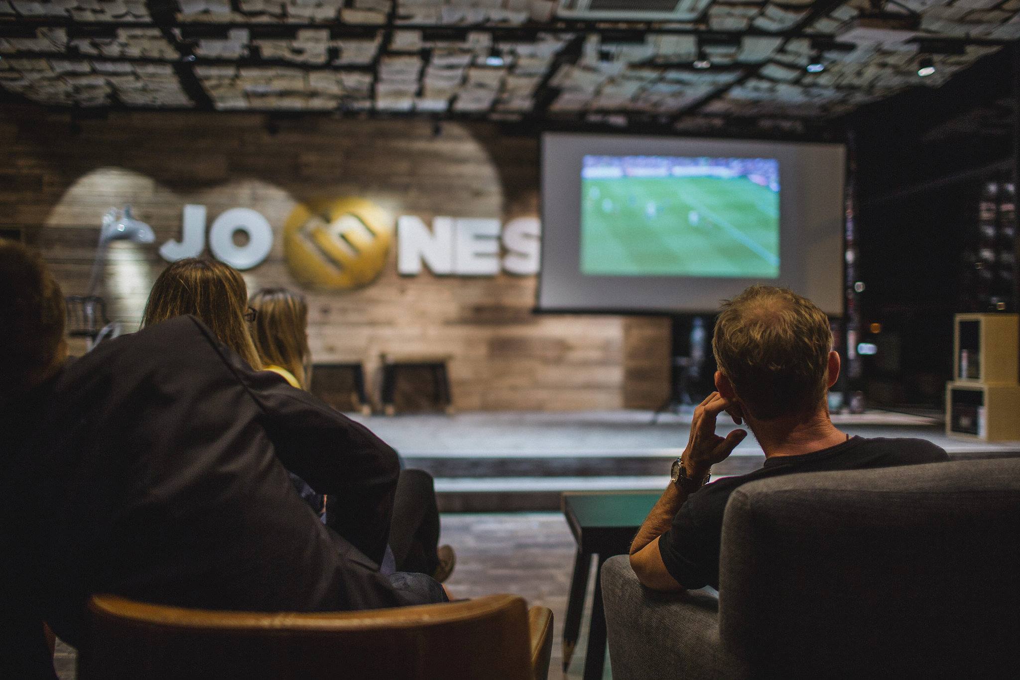 A potom sa stalo niečo neuveriteľné. Jo Nesbø je, ako bývalý profesionálny futbalista, stále veľkým fanúšikom futbalu a v ten večer chcel pozerať zápas Bayernu Mníchov proti FC Barcelone. Len tak zo žartu sme mu ešte cez deň navrhli, že ho môžeme pozerať u nás na veľkom plátne a on súhlasil! A tak sme po autogramiáde nainštalovali plátno, pohodlne sa usadili a v spoločnosti Jo Nesbøa a niekoľkých desiatok fanúšikov (ťažko povedať, či aj futbalu alebo len Nesbøa) sme si spoločne vychutnali druhý polčas tohto zápasu.